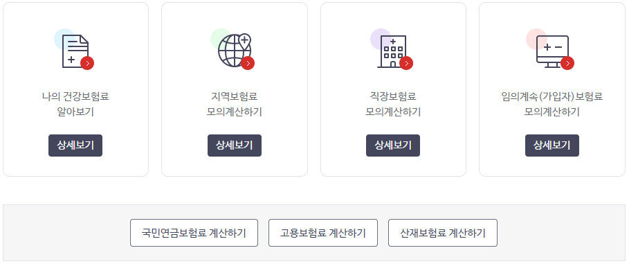 위의 이미지를 클릭하시면 본인의 건강 보험료를 계산해 볼 수 있습니다.