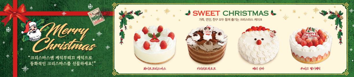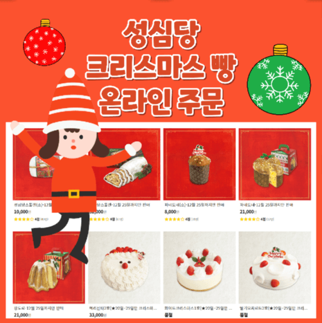 크리스마스에는 가족과 함께 특별한 케이크를 먹곤 하는데요. 고급진 호텔 케이크는 몇 십만 원도 한다는데, 유명 빵집인 성심당에서는 3만 원 대로 맛볼 수 있습니다. 대전에 살지 않아서 그림의 떡이라고요? 온라인 주문도 됩니다. 12월 4일 오전 9시부터 주문 예약된다고 하니, 아래 사이트에서 주문해보세요.