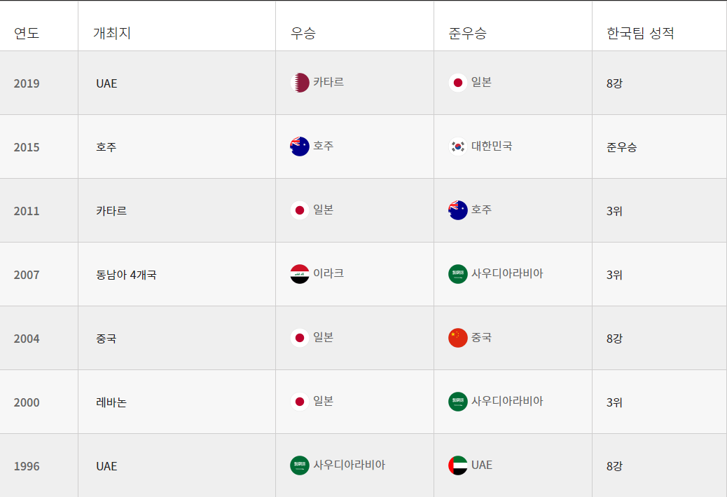 AFC 아시안컵 성적