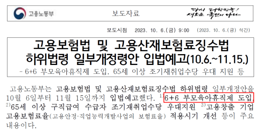 그런데 2024년부터는 이 제도가 업그레이드돼서 6+6, 즉 6개월 동안 통상 임금 100%를 받을 수 있도록 확대됩니다.